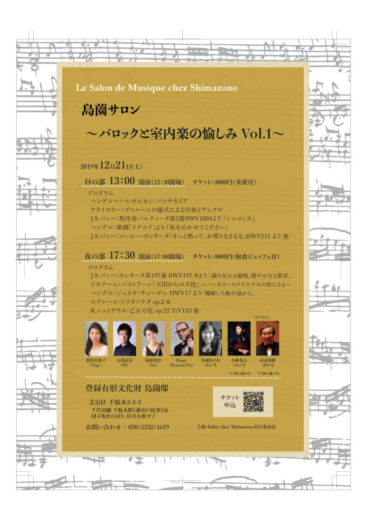 12月に文京区の島薗邸にてバロックを中心としたコンサートを行うことになりました。